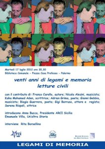 21:30 / Cala Palme — “Intervista impossibile a Paolo Borsellino” di Gianpiero Caldarella con Elena Ferrara e Gianpiero Caldarella.