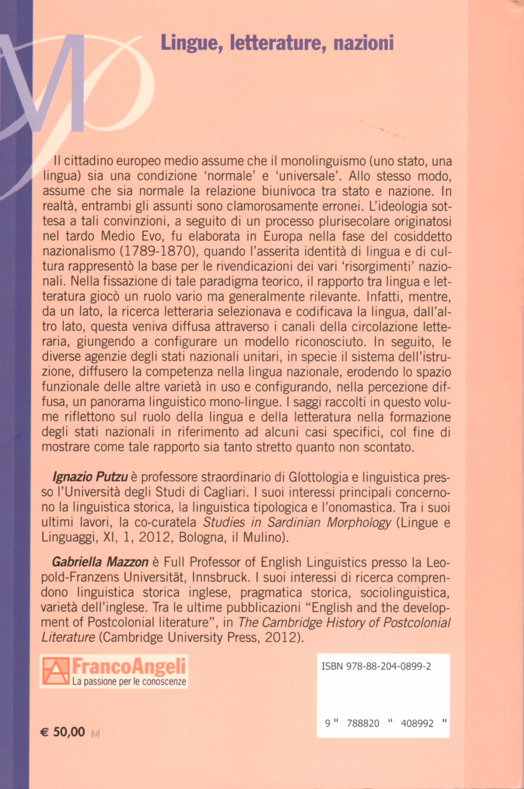 Ignazio Putzu, Lingua e letteratura nella formazione degli stati nazionali in Europa e nel Mediterraneo: aspetti di quadro
