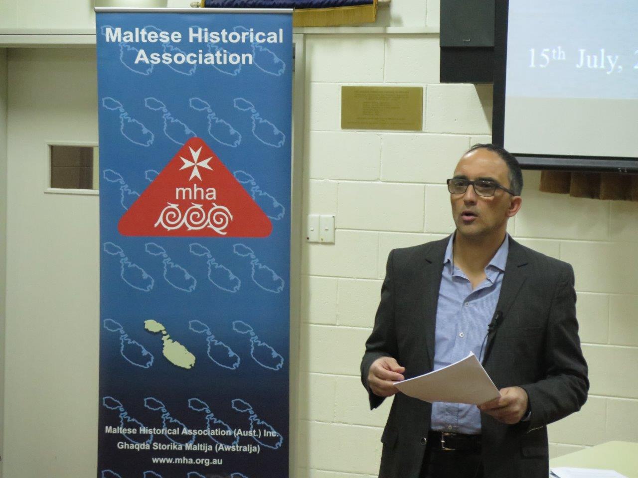 A public talk by Dr Adrian Grima, followed by a discussion, hosted by the Maltese Historical Association (Australia) at the Maltese Community Council of Victoria, Parkville, Melbourne on Tuesday 15th July 2014.