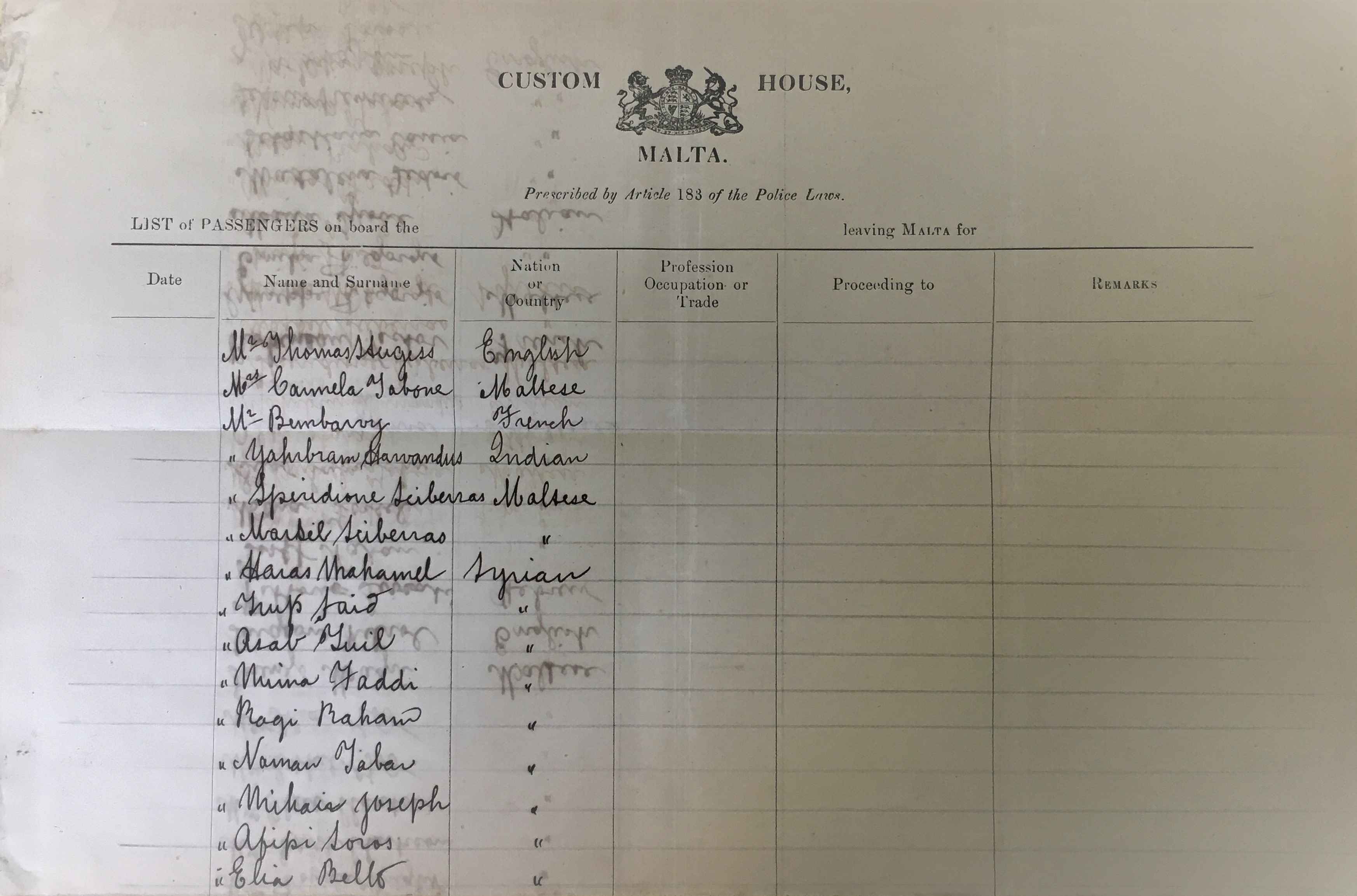 Illum fir-reġistri bil-manifesti tal-vapuri li kienu jinġabru mill-uffiċjali tad-Dwana u li issa jinsabu fl-Arkivji Nazzjonali sibt vjaġġ li kont ili nfittxu minn qabel il-Milied. Kont għajni mimlija li se nsibu malajr, imma arrali. Naħseb li tant kont kunfidenti li ma kontx attent għal kull isem bħas-soltu. Meta jiġrili hekk nispiċċa ntertaq qalbi li se jaħrabli dettall u jiswieni ġimgħat ta’ tiftix fil-vojt.
