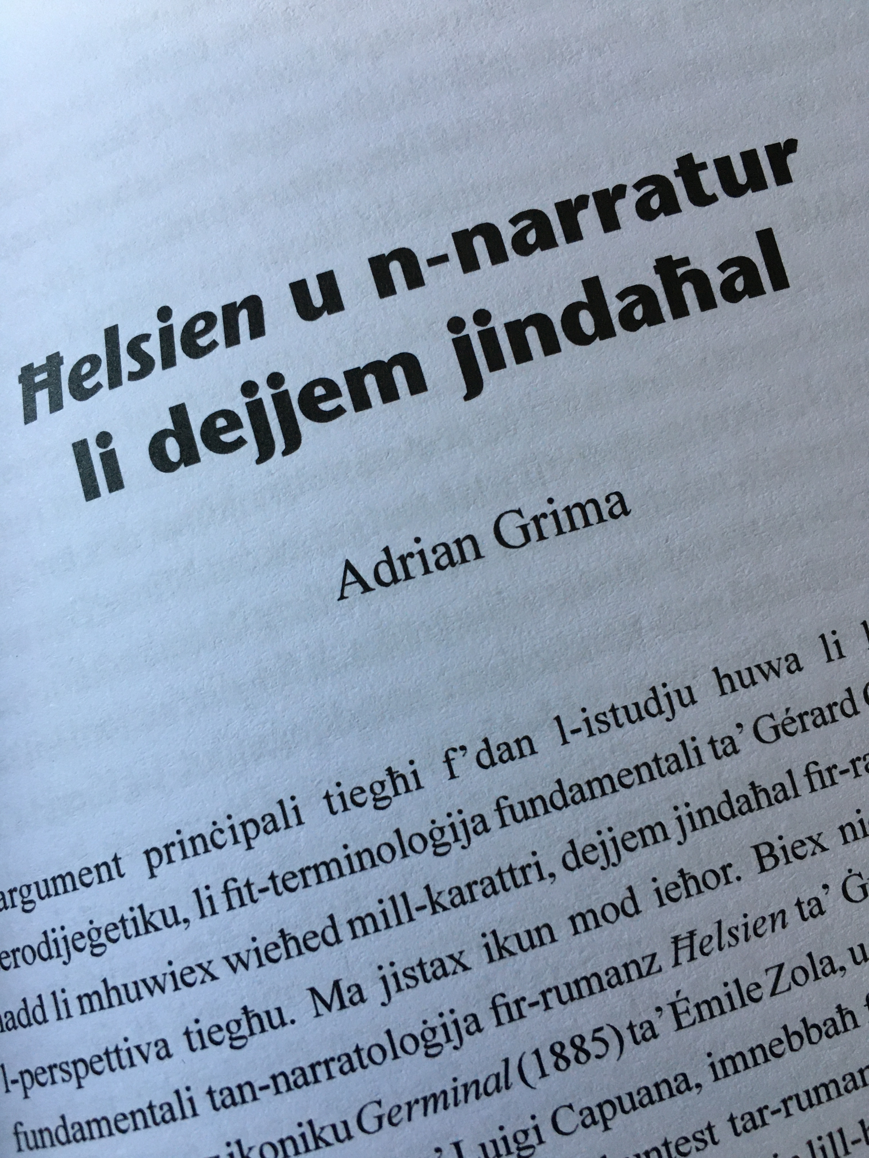 Għal qalbi ħafna dan ix-xogħol fuq ir-rumanz Ħelsien ta’ Ġużè Bonnici. Naħseb li jistħoqqlu ferm iżjed attenzjoni milli ngħata mill-kritika Maltija dan ir-rumanz. Naf li l-lingwaġġ tiegħu jirrifletti l-moda letterarja ta’ qabel it-Tieni Gwerra Maltija, meta l-kittieba kienu qegħdin iħabirku biex joħolqu lingwaġġ letterarju dinjituż.