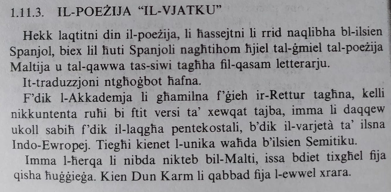 Patri Ġużè Delia daħħal it-traduzzjoni Spanjola tiegħu ta’ “Il-Vjatku” ta’ Dun Karm fil-ktieb tiegħu Meta Toħlom il-Qalb. Ġabra ta’ Poeżijiet (Giov. Muscat, 1962).