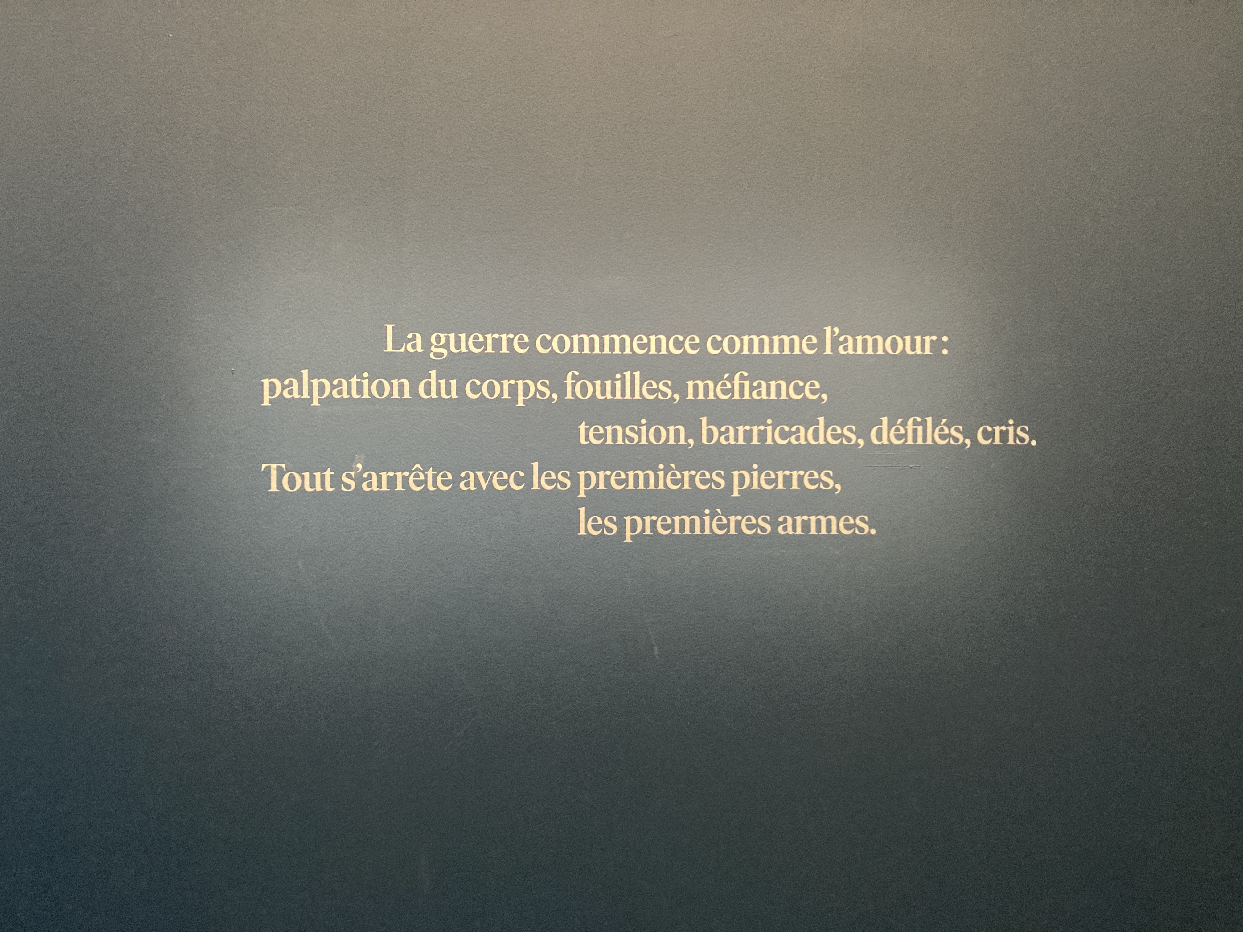 Un « texte d’exfiltration » guide le visiteur vers la sortie ; et un film inédit avec Raymond Depardon et Kamel Daoud, Kamel et Raymond (22′), réalisé par Claudine Nougaret pour l’exposition, conclut le parcours.