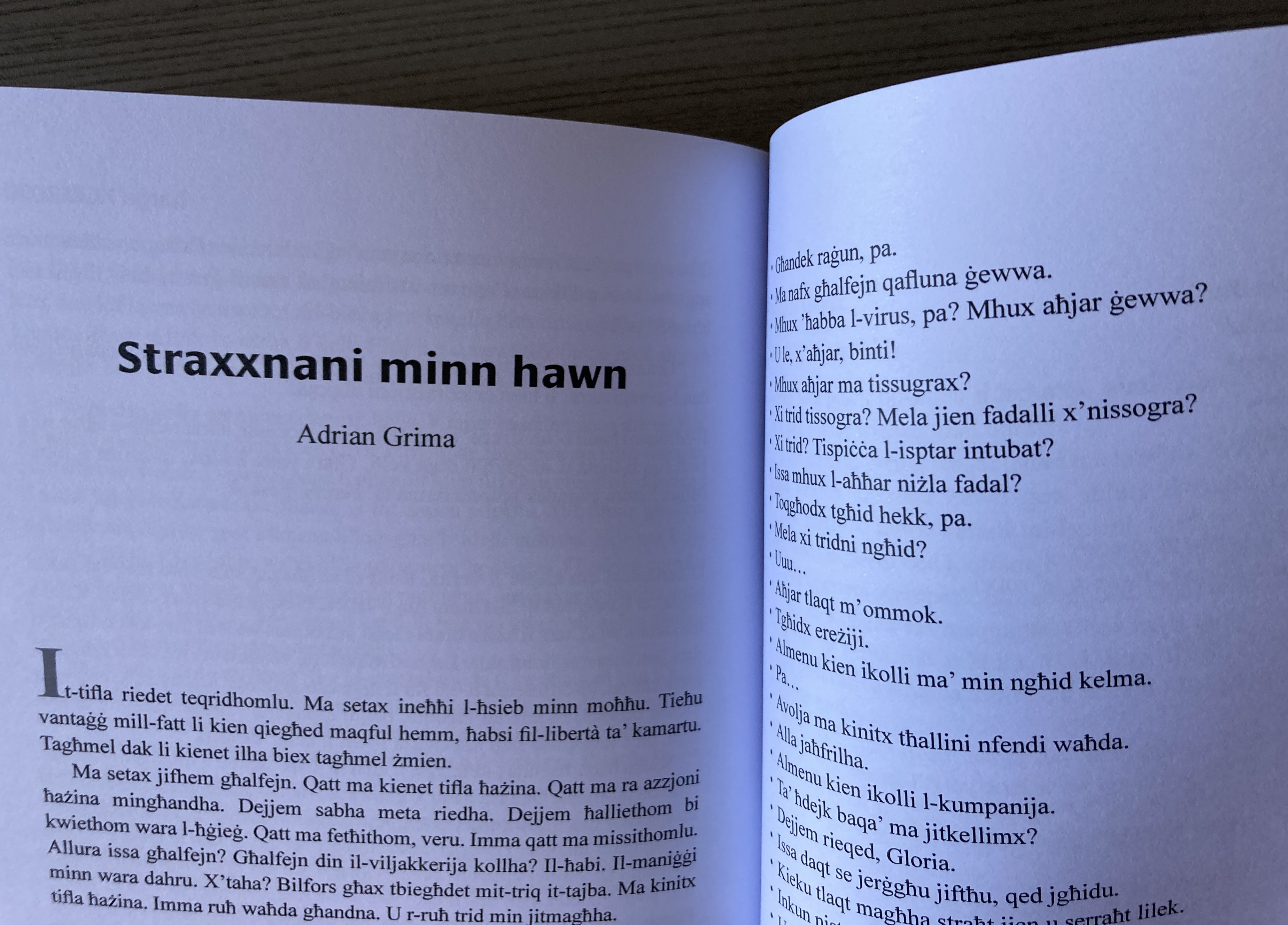 Fl-aħħar ħarġa ta’ Il-Malti (ħarġa letterarja XCIII, 2020), ir-rivista tal-Akkademja tal-Malti, hemm in-novella tiegħi “Straxxnani minn hawn” li ktibtha f’Settembru tal-2020. Ridt nirrakkonta t-traġedja tal-anzjani fl-eqqel tal-pandemija f’Malta u kont imnebbaħ kemm minn persuni li smajt fuqhom u kemm minn ġrajjiet li ngħataw prominenza fil-mezzi tax-xandir. Fl-istess ħin hija novella li fiha ridt ninqeda bil-lingwaġġ ta’ pubblikazzjonijiet qodma ta’ madwar mitt sena ilu. Din in-novella hija parti minn proġett ta’ kitba ta’ novelli li nittama li ma jdumux ma jidhru fi ktieb għalihom.