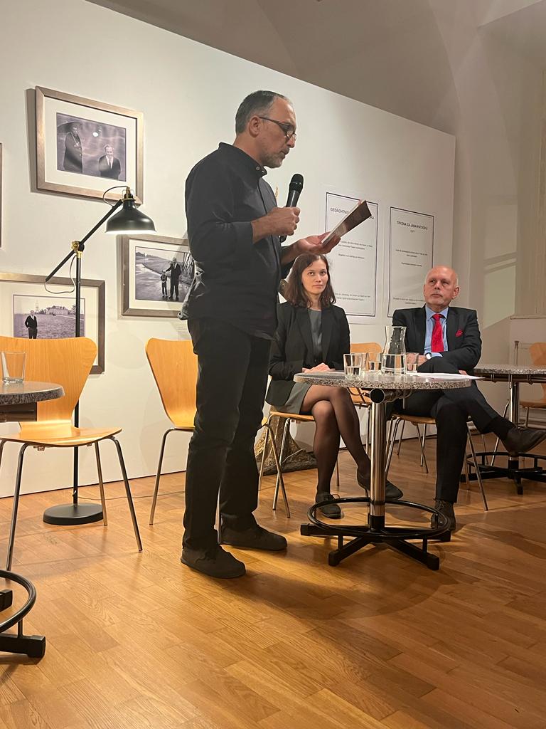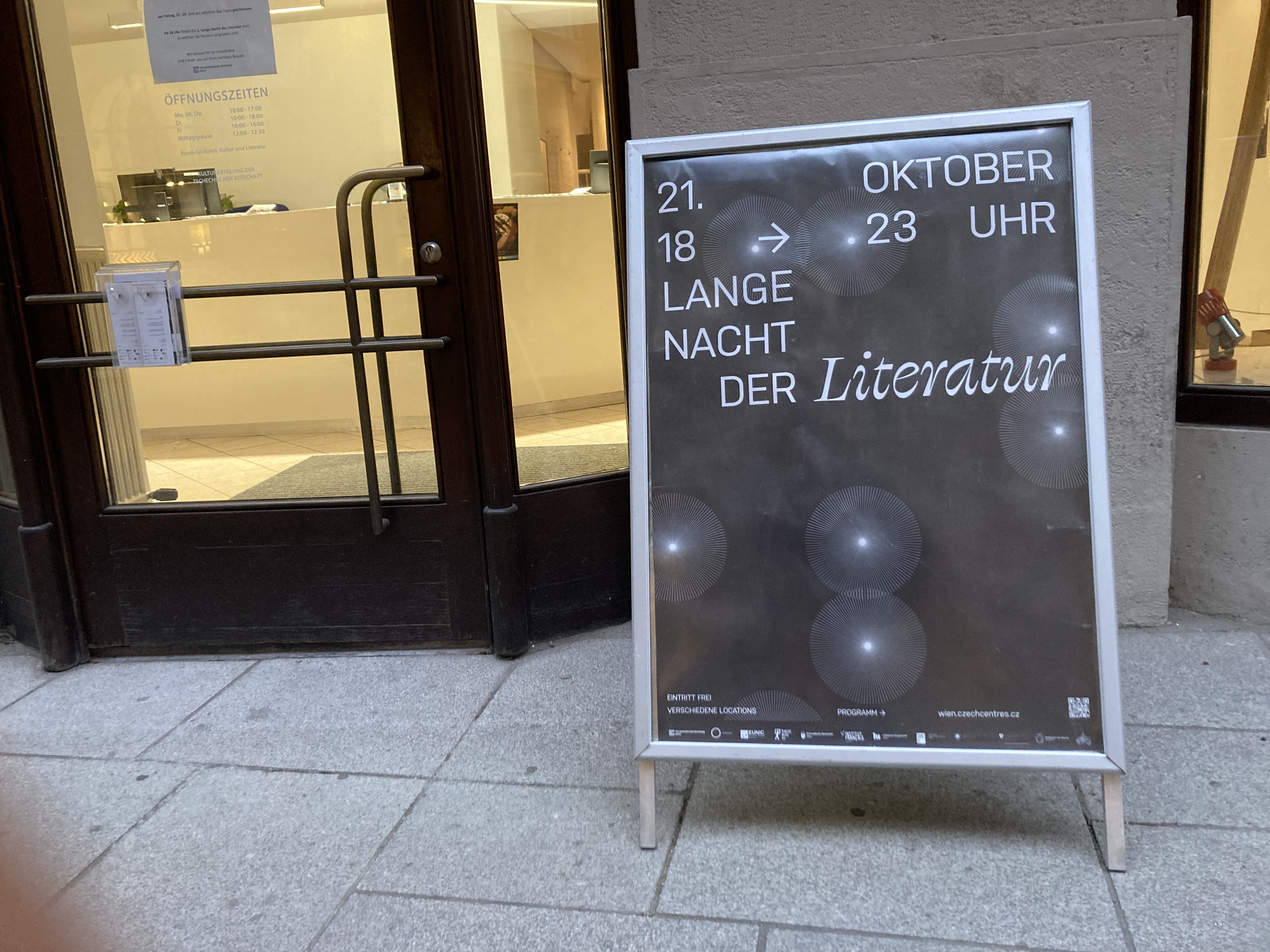 On Friday October 21, 2022, the Czech Center organized a round of readings in various cultural institutes in Vienna as part of the Lange Nacht der Literatur, or “Long Night of Literature” to mark the Czech EU Council Presidency. The motto of the initiative was “Peace” and featured nine authors from nine countries.