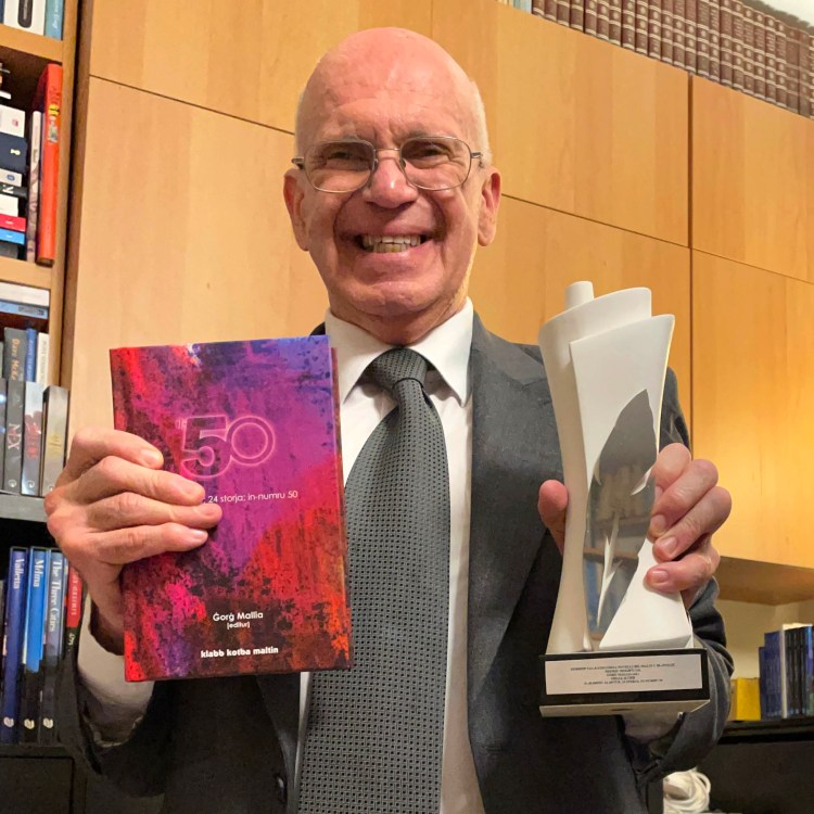 Fil-lejla tal-għoti tal-Premju Nazzjonali tal-Ktieb 2022 għall-kotba li ħarġu fl-2021, is-sezzjoni tan-novelli bil-Malti u bl-Ingliż intrebħet minn Ġorġ Mallia għall-editjar tal-ġabra tal-Klabb Kotba Maltin, Il-Ħamsin (2021). Il-ktieb fih 24 novella, fosthom waħda tiegħi bl-isem ta’ “Daħna” dwar mara fit-taqsima tat-terapija intensiva tal-isptar li tkun marida sew bil-COVID.