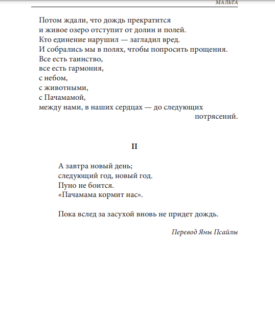 Malta ġiet irrappreżentata f’dal-almanakk mit-traduzzjonijiet ta’ Yana Psaila għar-Russu ta’ poeżiji ta’ Oliver Friggieri, Louis Briffa, Omar Seguna, Immanuel Mifsud, Ġorġ Peresso, Charles Coleiro, u tiegħi (ara l-paġni 170-171).