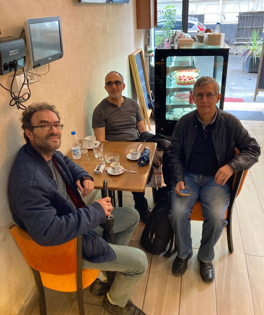 Il y a quelques jours, dans un café au centre d’Alger, avec mon ami Mourad Yelles, j’ai finalement rencontré mon éditeur en Algérie, Karim Chikh (à gauche) de la maison d’édition APIC, qui a publié Romarin et autres caprices (2022).