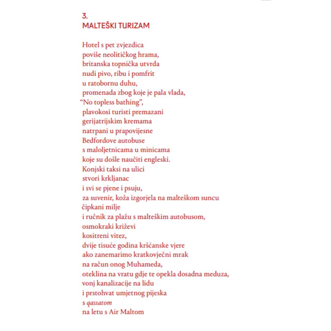 Thanks to Mika and her wonderful team for believing in Maltese poetry and choosing to publish a stylish and searching collection in Croatian. The five poets give a good taste of what so many Maltese poets and publishing.