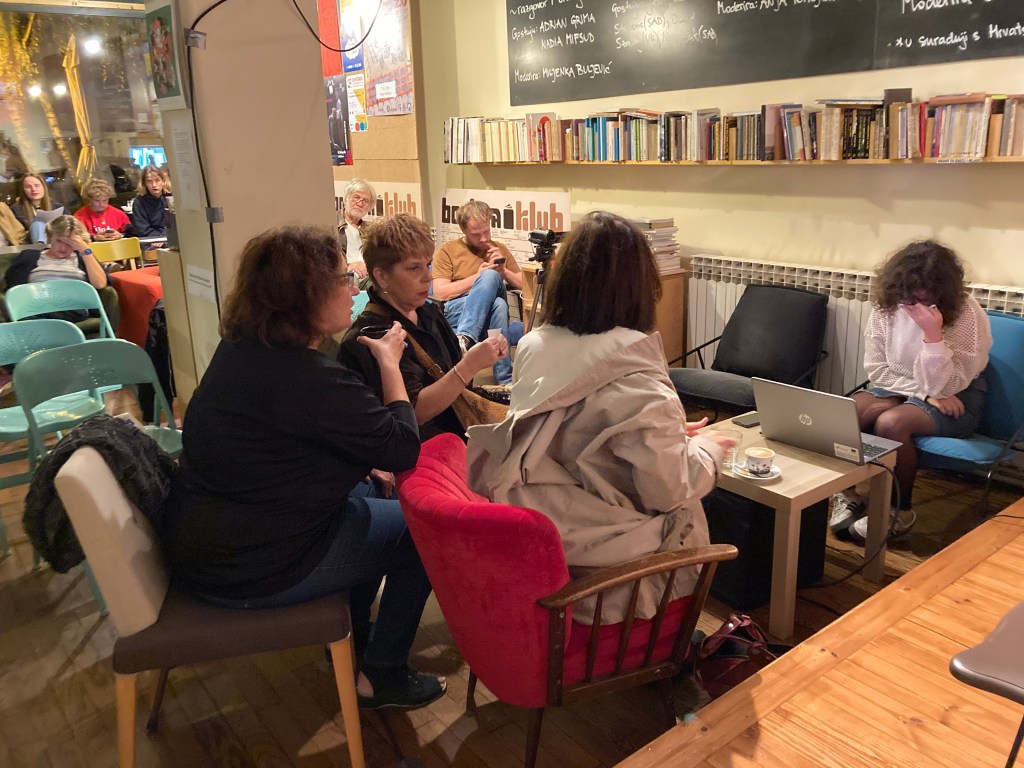 The audiences of mainly young people that filled Booksa’s lounge were thoroughly engaged and there were interesting discussions with the audience after both events. The first event was moderated by Miljenka Buljević (or Mika) and the second event was moderated by Anja Tomljenović.