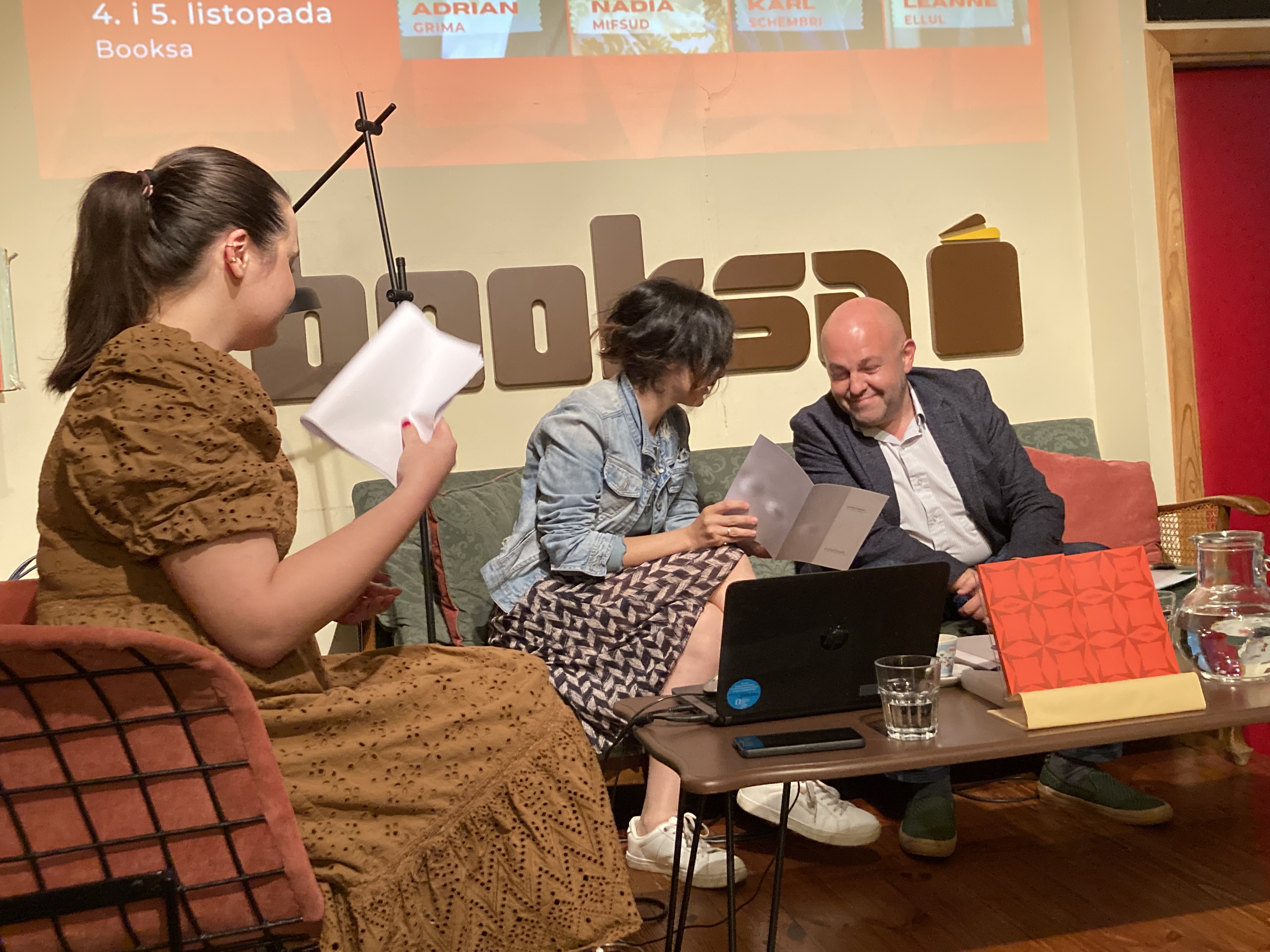 The official pictures of the evenings were taken for Booksa by Kyril Rubinstein and the Croatian cultural television station VIDA were present on Thursday 5 October to interview Miljenka Buljević of Booksa, Adrian Grima and Nadia Mifsud.