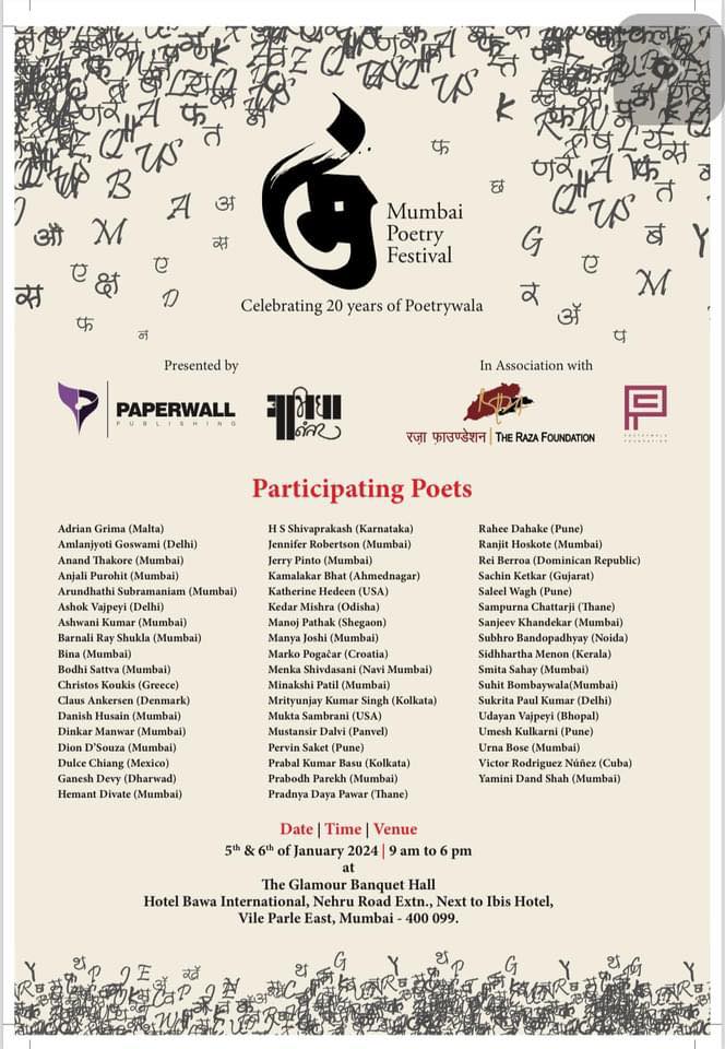 In January 2024 I was invited to Mumbai to take part in the 2024 edition of the Mumbai Poetry Festival organised by Poetrywala Foundation in association with Paperwall Publishing and The Raza Foundation to celebrate 20 years of the celebrated poetry imprint Poetrywala.