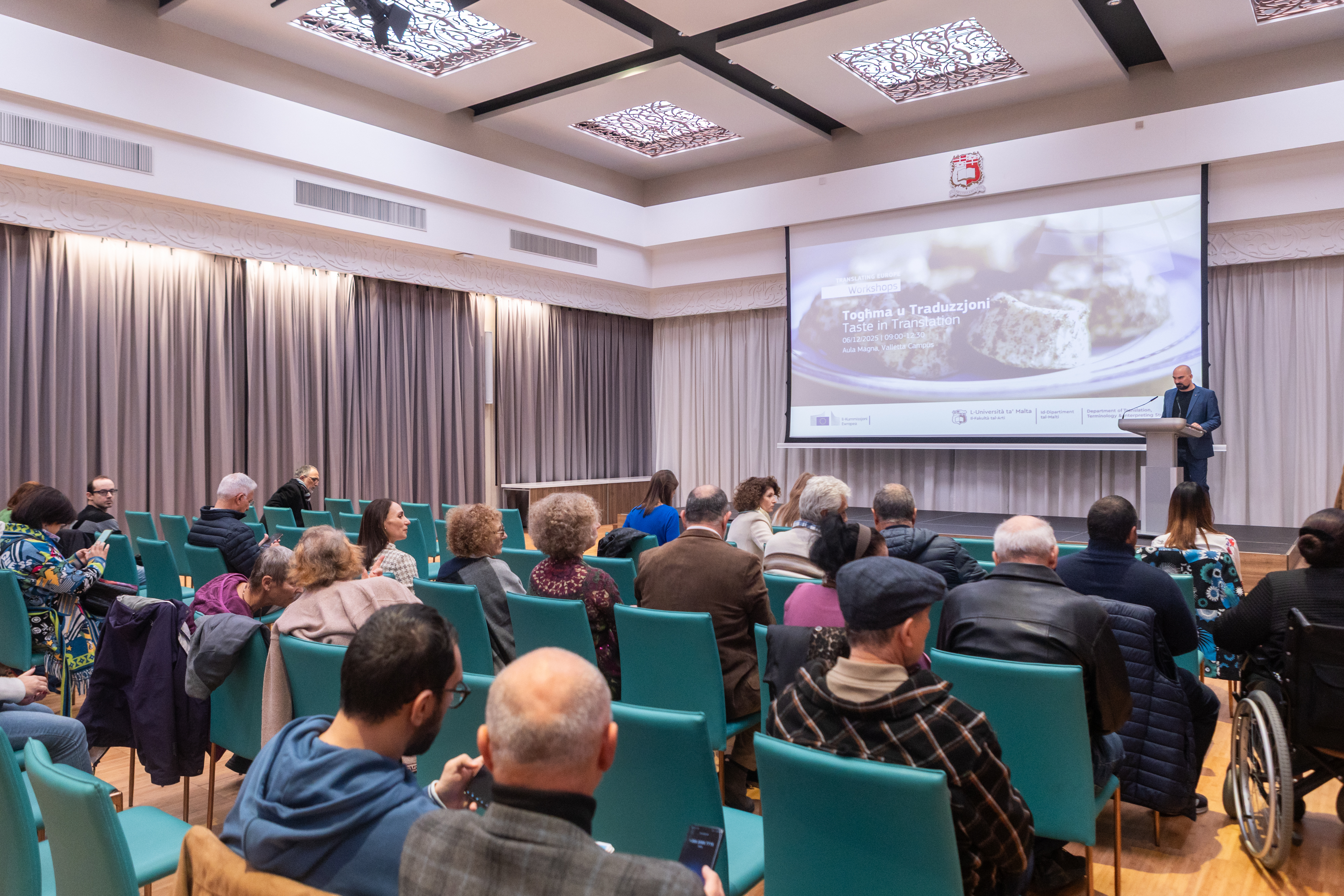 Il-konferenza “Togħma u Traduzzjoni” ta’ nhar is-Sibt, 6 ta’ Diċembru 2025, ħadet spunt mir-reġistrazzjoni tal-ġbejna tan-nagħaġ fl-2025 bħala DOP (jew Denominazzjoni ta’ Oriġini Protetta) biex tiddiskuti r-relazzjoni bejn it-traduzzjoni u l-ikel u x-xorb minn diversi angoli. Il-kelliema ħarsu lejn modi professjonali u aġġornati ta’ kif niktbu testi bil-Malti marbutin mal-ikel u x-xorb, fosthom riċetti u menus, u kif nittraduċuhom għall-Malti u mill-Malti għal-lingwi oħrajn, ngħidu aħna fil-qasam tat-turiżmu. Il-konferenza saret fl-Aula Magna tal-Valletta Campus tal-Università ta’ Malta, bejn id-09:00 u 12:30, bħala parti mit-Translating Europe Workshops tal-Unjoni Ewropea tal-2025.
